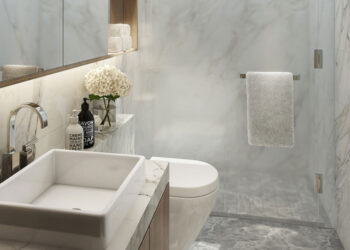 Trang bị đầy đủ các thiết bị vệ sinh từ các thương hiệu quốc tế uy tín (TOTO/Kohler hoặc tương đương), bao gồm bồn tắm, vách kính đứng, và máy nước nóng.